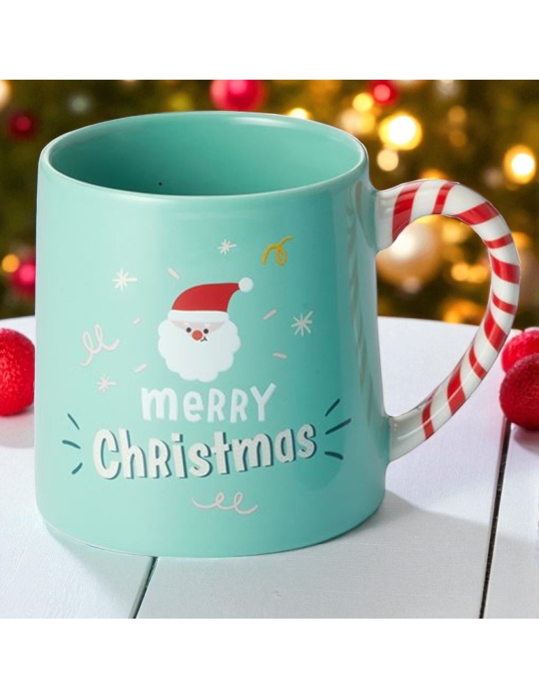 La tasse “Sweet Christmas” invite à la douceur et au cocooning. Fabriquée en porcelaine fine New Bone China, elle allie élégance, robustesse et délicatesse au toucher. Son design plein de charme évoque la joie et la chaleur des fêtes de fin d’année : un adorable décor hivernal sur fond bleu pastel, orné d’une anse originale en forme de canne à sucre rouge et blanche.