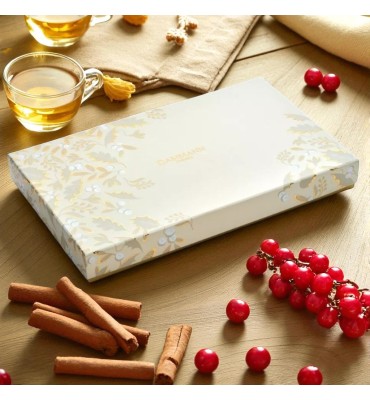 Plongez dans la féérie des fêtes avec le Coffret Rêves de Noël signé Dammann Frères. Cet assortiment rassemble 12 créations exclusives de thés et infusions, inspirées des traditions de Noël à travers le monde, présentées dans un élégant coffret décoré de feuillages d’hiver. Chaque sachet est individuellement emballé pour préserver la fraîcheur des parfums.