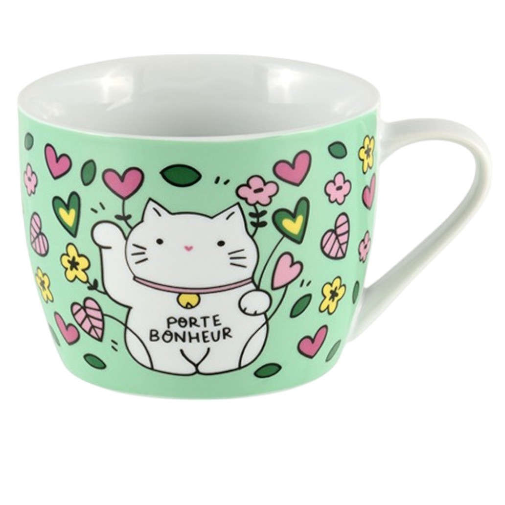 Son design enchanteur représente un chat espiègle accompagné de l’inscription « Chat Bonheur », apportant une touche de joie et de convivialité à votre vaisselle. Les couleurs vives et les détails soignés de l’illustration en font un objet décoratif qui séduira les amoureux des félins et les amateurs de belles tables.