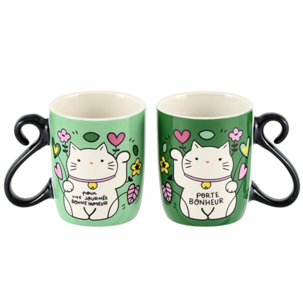 Leur design enchanteur représente des chats espiègles accompagnés de l’inscription « Chat Bonheur », apportant une touche de joie et de convivialité à votre rituel de dégustation. Les couleurs vives et les détails soignés de l’illustration en font des objets décoratifs qui sauront séduire les amoureux des félins et les amateurs de boissons chaudes.