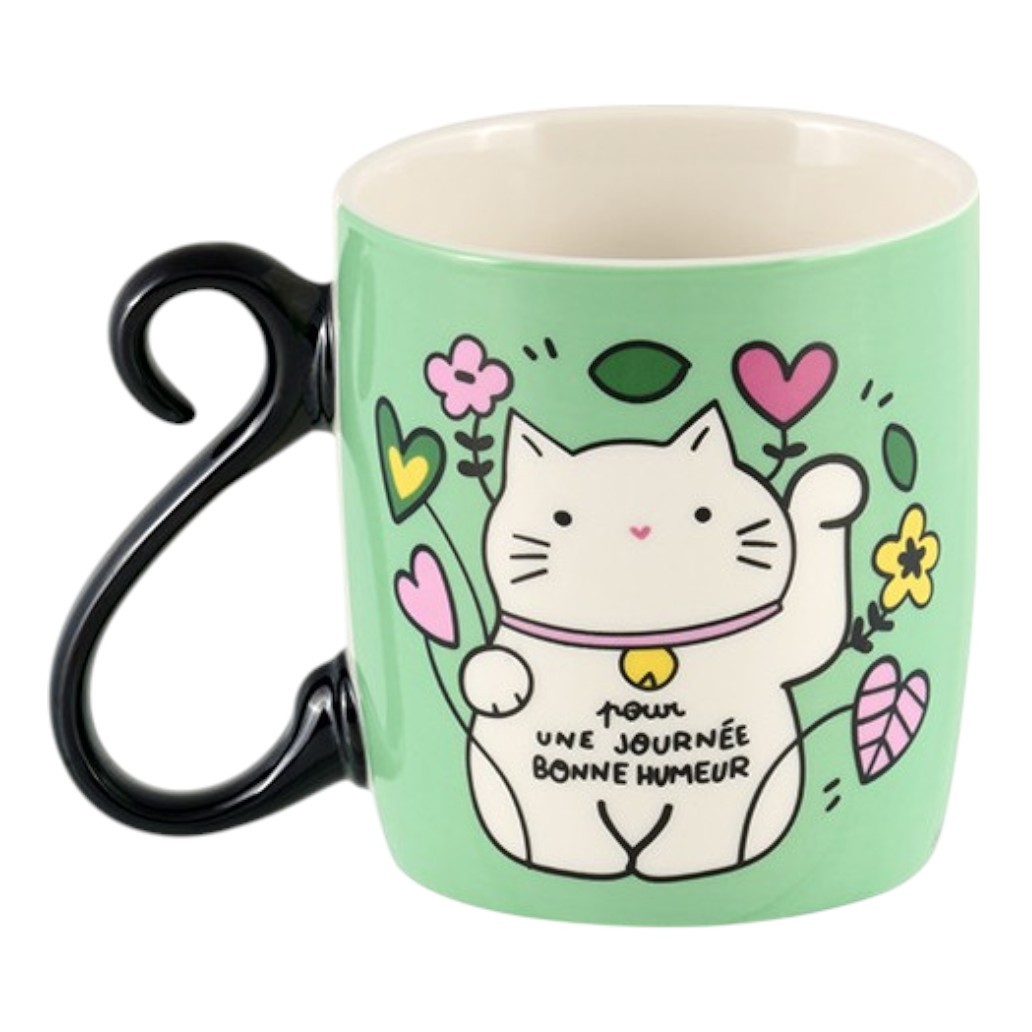 Son design enchanteur représente un chat espiègle accompagné de l’inscription « Chat Bonheur », apportant une touche de joie et de convivialité à votre rituel de dégustation. Les couleurs vives et les détails soignés de l’illustration en font un objet décoratif qui saura séduire les amoureux des félins et les amateurs de boissons chaudes.