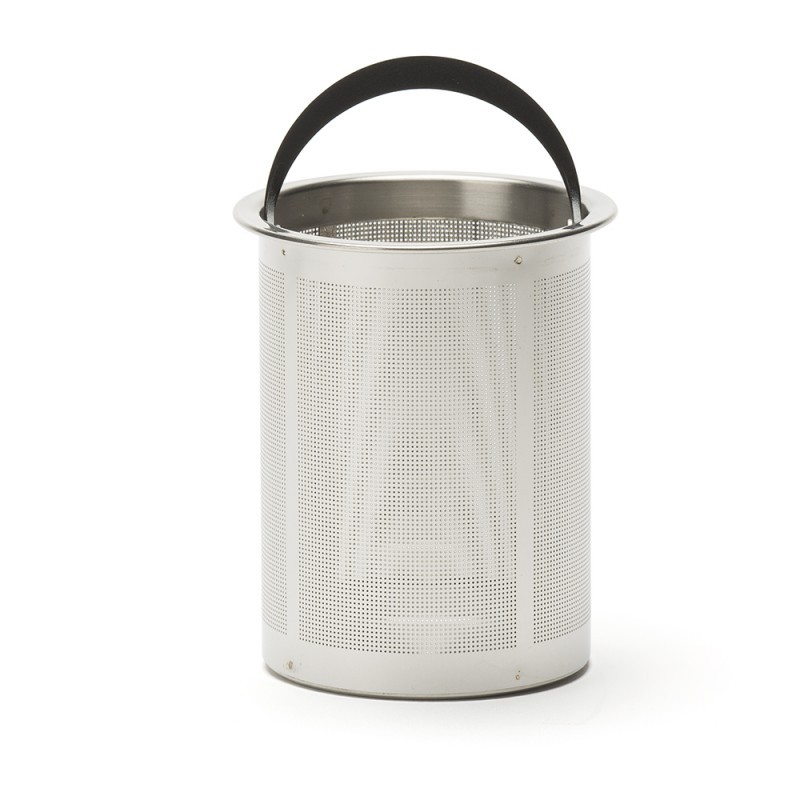 Filtre à théière en acier inoxydables muni d’une poignée rabattable en silicone. Dimensions : Ø 6 x H 8,5 cm