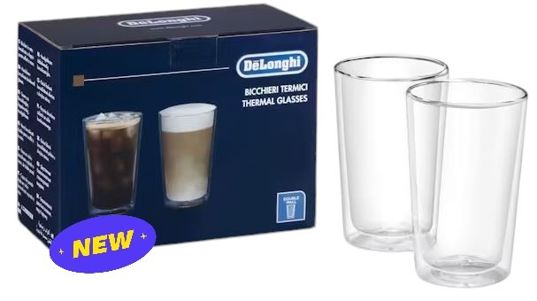 Les verres thermiques De’Longhi DLSC319 en verre borosilicaté soufflé à la main offrent une isolation isotherme, maintiennent vos boissons à température optimale et allient élégance et praticité.