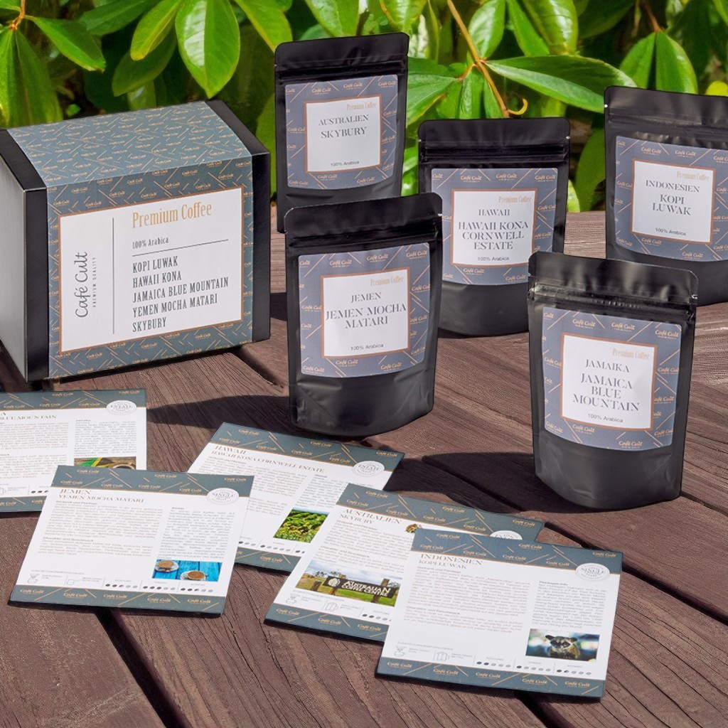 Chaque sachet de 50 g vous emmĂšne vers un terroir dâexception : le JamaĂŻque Blue Mountain, cafĂ© mythique Ă la rondeur parfaite ; le Kona dâHawaĂŻ, doux et fruitĂ© ; le Moka Matari du YĂ©men, aux notes Ă©picĂ©es et intenses ; lâAustralie Skybury, Ă©quilibrĂ© et soyeux ; et enfin le trĂšs rare Kopi Luwak dâIndonĂ©sie, lâun des cafĂ©s les plus prĂ©cieux au monde.