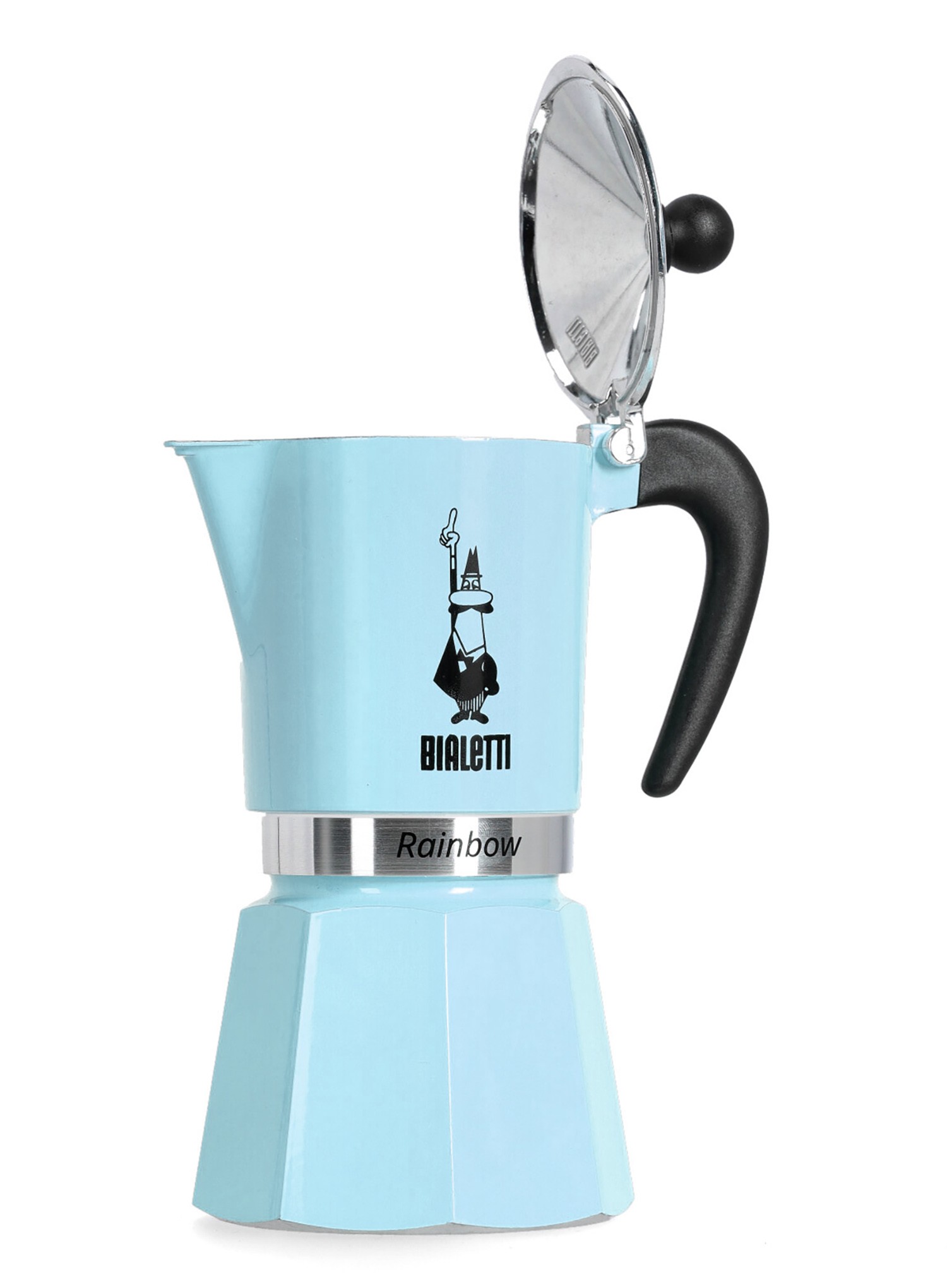 La cafetière italienne Bialetti Rainbow bleu clair a été pensée pour transformer chaque préparation en un moment de plaisir et de créativité. Fabriquée en aluminium de haute qualité, elle garantit une diffusion homogène de la chaleur pour révéler toute la richesse et la profondeur des arômes. Sa finition bleu pastel, lumineuse et moderne, apporte une touche originale et élégante à votre cuisine.