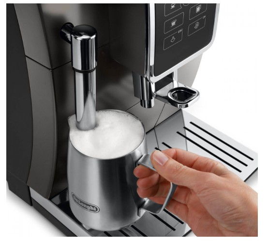 La De’Longhi Dinamica ECAM 350.15.B est une machine expresso broyeur conçue pour offrir une extraction parfaite du café à domicile. Son broyeur intégré avec 13 niveaux de mouture garantit une fraîcheur et un arôme optimal. Son interface tactile intuitive permet de préparer facilement diverses boissons comme l’espresso, le café long ou l’americano. Équipée d’une buse vapeur, elle permet également de réaliser de délicieux cappuccinos et lattes macchiatos. Son design moderne et compact s’intègre parfaitement dans toute cuisine. Son entretien est simplifié grâce aux programmes automatiques de rinçage et de détartrage.