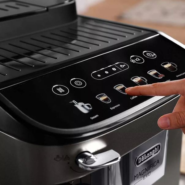 La De’Longhi Magnifica Evo FEB2942.TB est conçue pour offrir une expérience café de qualité professionnelle à domicile. Son broyeur intégré moud les grains à la demande, garantissant une fraîcheur et une richesse aromatique optimales. Avec 6 recettes préprogrammées, elle permet de préparer une variété de boissons, de l’espresso intense au café long, en passant par le cappuccino grâce à sa buse vapeur.