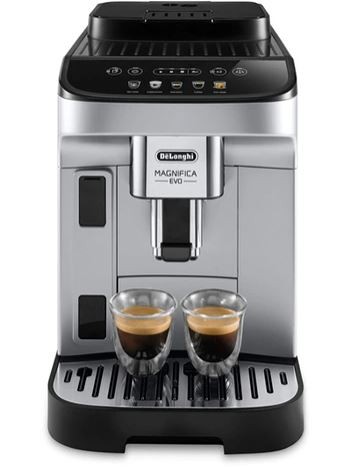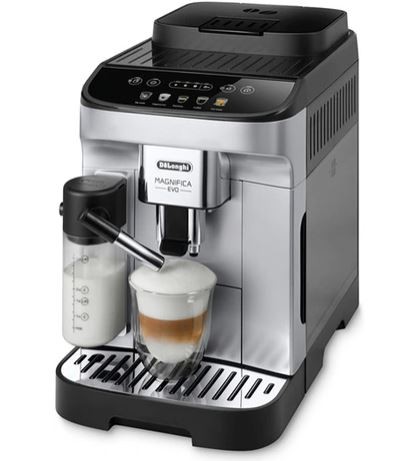 La De’Longhi Magnifica Evo FEB2961.SB est une machine expresso automatique dotée d’un broyeur intégré, permettant de préparer des cafés à partir de grains fraîchement moulus. Elle offre 5 recettes préprogrammées accessibles via un panneau de commande tactile intuitif aux icônes colorées, facilitant la sélection de vos boissons préférées. La carafe à lait LatteCrema intégrée permet de réaliser des mousses de lait onctueuses pour des cappuccinos et lattes parfaits. Son design compact et élégant en finition argent et noir s’intègre parfaitement dans toutes les cuisines. De plus, elle dispose d’une fonction d’économie d’énergie, garantissant une consommation optimisée.