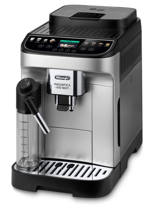 Le design moderne de la Magnifica Evo Next, avec sa finition argent et noir, s’intègre harmonieusement dans toutes les cuisines. Les programmes de nettoyage et de détartrage automatiques facilitent son entretien, assurant une utilisation durable et sans souci. Cette machine est idéale pour ceux qui recherchent une expérience café personnalisée et de qualité professionnelle à domicile.