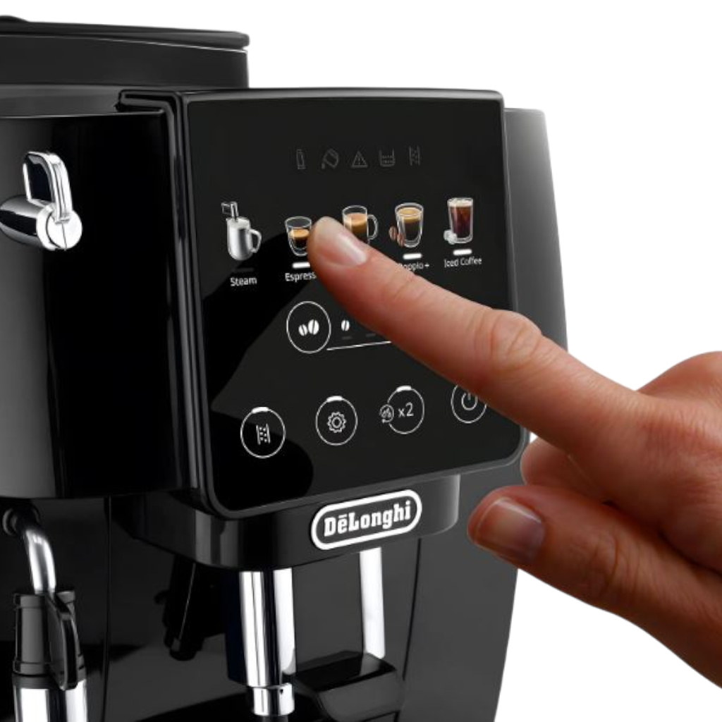 La De’Longhi Magnifica Start FEB 2252.B, dans sa version noire, est un modèle exclusif vendu uniquement chez les torréfacteurs agréés De’Longhi. Conçue pour offrir un café de qualité professionnelle à domicile, elle combine design épuré, confort d’utilisation et excellence technique.
