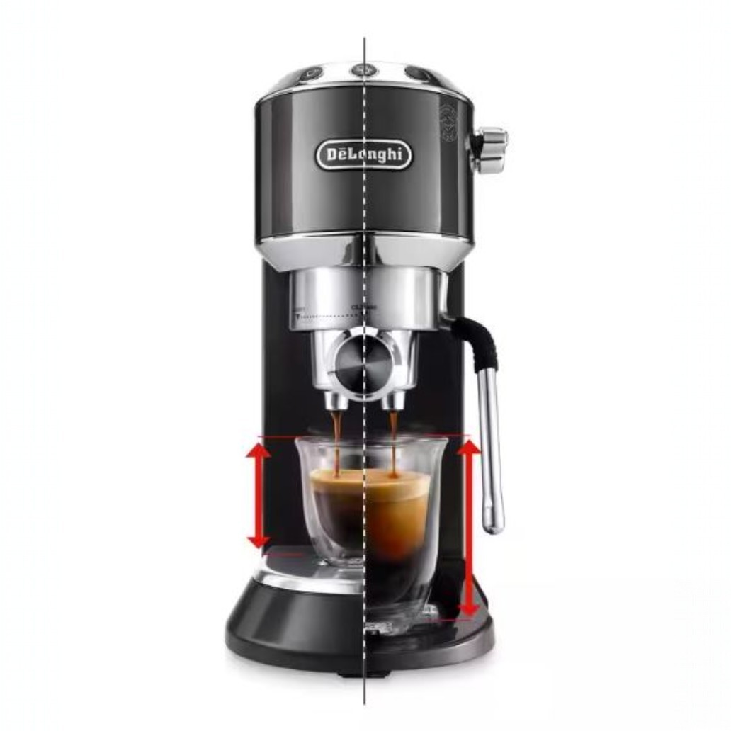 Avec sa finition en acier inoxydable et son coloris gris étain, la Dedica Arte EC885.GY apporte une touche d’élégance à votre espace café. Son format ultra-fin permet de l’installer sans encombrer le plan de travail, tout en offrant une performance digne des grandes machines.