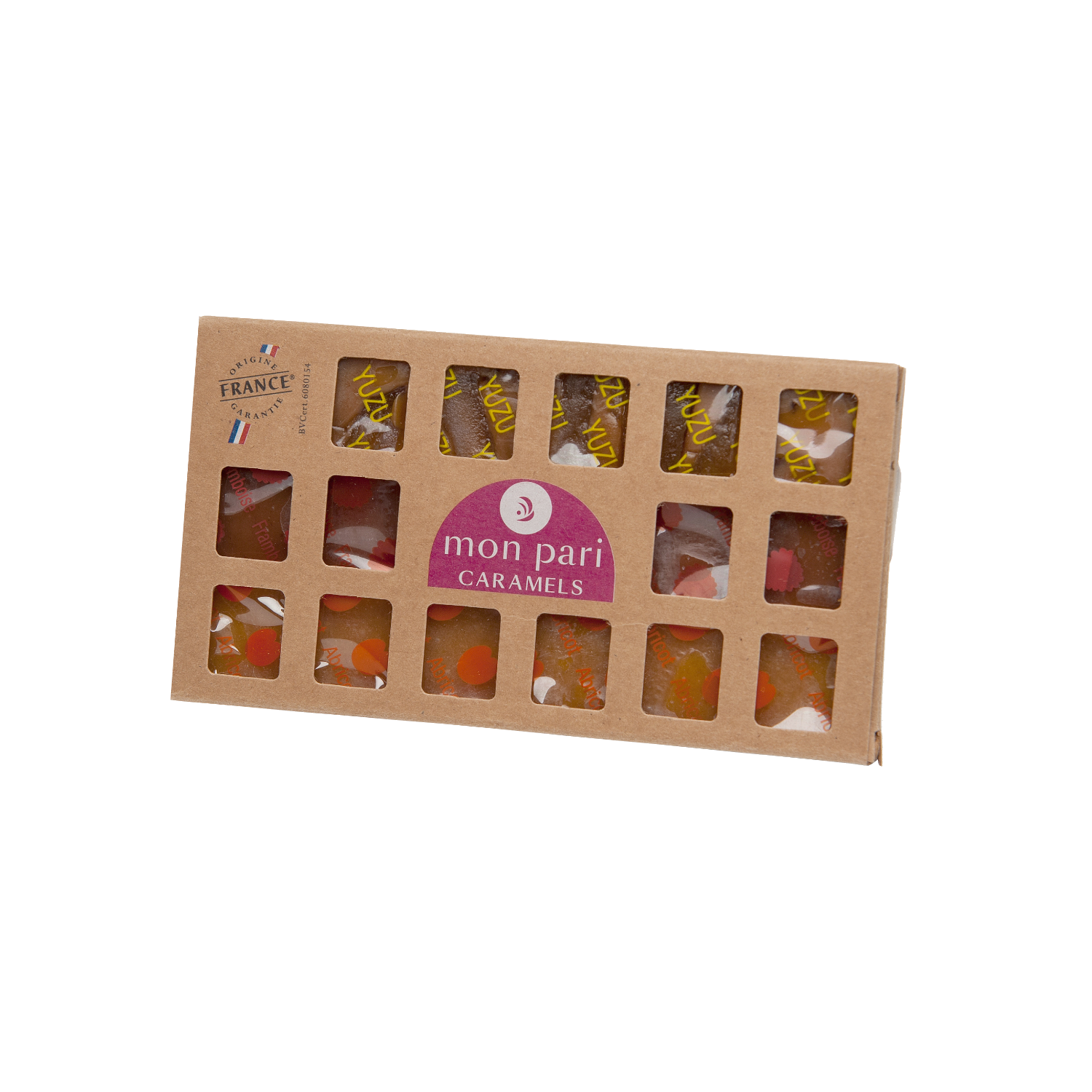 Découvrez un assortiment gourmand de 18 caramels artisanaux aux saveurs fruitées : abricot, framboise et yuzu. Élaborés à partir d’ingrédients de qualité tels que le lait cru, la crème fraîche et le beurre A.O.P. Charentes-Poitou, ces caramels sont cuits lentement à basse température pour préserver leur moelleux et leur finesse. Leur texture fondante et leurs notes acidulées offrent un équilibre parfait entre douceur et fraîcheur. Présentés dans une élégante boîte kraft, ils constituent un cadeau raffiné ou une pause sucrée idéale à savourer avec un café ou un thé.