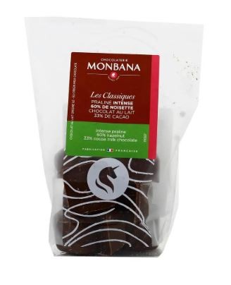 Avec la fève lait noisette intense, Monbana propose une création qui séduit par son raffinement et son authenticité. Derrière son enrobage de chocolat au lait onctueux se cache un praliné généreux, composé à 60 % de noisettes, qui confère à ce chocolat une profondeur de goût et une intensité unique. Cette alliance subtile révèle une texture fondante et croquante à la fois, offrant un moment de dégustation plein de contrastes.