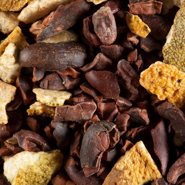 Évocatrice d’une orangette, délicieuse confiserie de chocolat, cette recette gourmande associe la saveur chocolatée finement acidulée et délicatement fruitée d’une fève de cacao de Madagascar à celle douce et fruitée d’écorces d’oranges qu’un trait vif d’huile essentielle d’orange sanguine accompagne. Une combinaison à l’infusion aromatique, légère et gourmande, véritable invitation à découvrir le plaisir d’une boisson chocolatée sans ajout de lait ni de sucre.