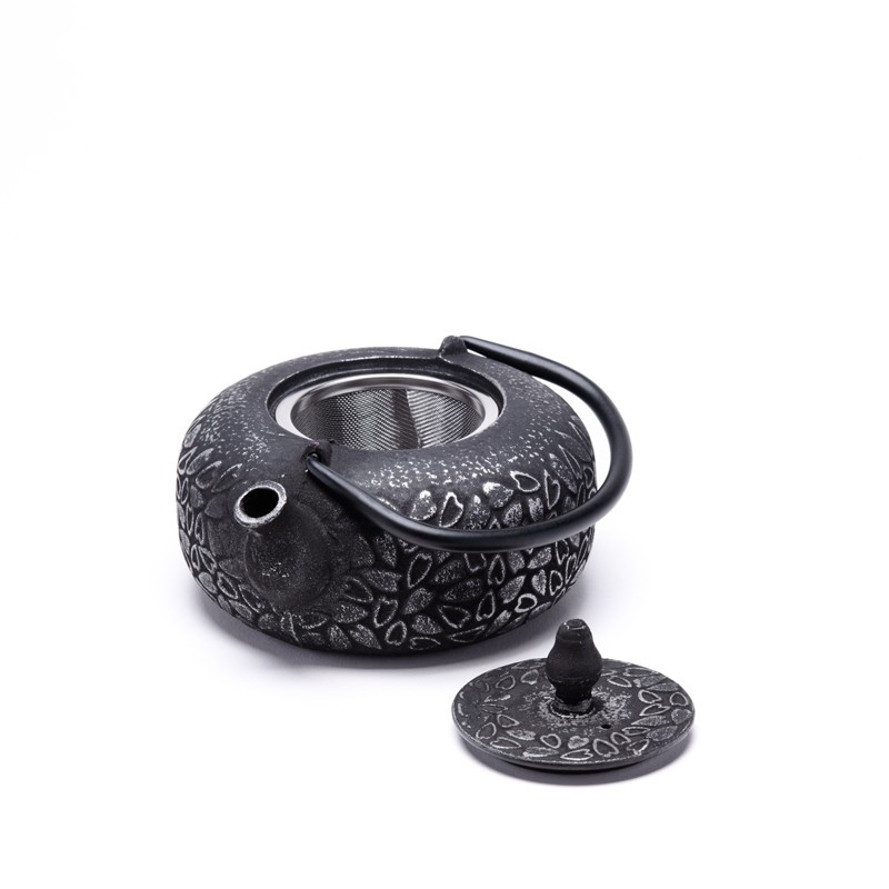 Belle finition de patine mate et brillante pour cette théière en fonte au décor végétal. Réalisée en fonte à l’intérieur émaillé, elle est d’une contenance d’un litre environ et est équipée d’un filtre en inox. Pour prolonger la vie de cette théière, il est recommandé de la rincer à l’eau claire après chaque utilisation et de la sécher soigneusement. Elle ne doit pas être posée directement sur une source de chaleur. Ne peut être utilisée en micro-ondes, ne pas laver en lave-vaisselle.