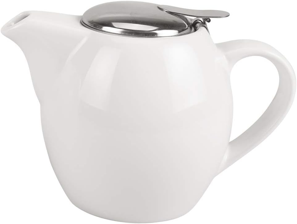 La théière « Bollo » en céramique blanche de 0,5 L est un choix raffiné pour savourer vos thés préférés. Son filtre en acier inoxydable assure une infusion homogène, adaptée aux thés en vrac comme aux sachets. Sa capacité de 0,5 litre permet de préparer environ 2 à 3 tasses, idéale pour une dégustation en solo ou en petit comité. Son design épuré et sa finition brillante en font un accessoire élégant qui s’intègre parfaitement à tout service à thé. Sa poignée ergonomique assure une prise en main confortable, tandis que son bec verseur facilite le service sans éclaboussures.