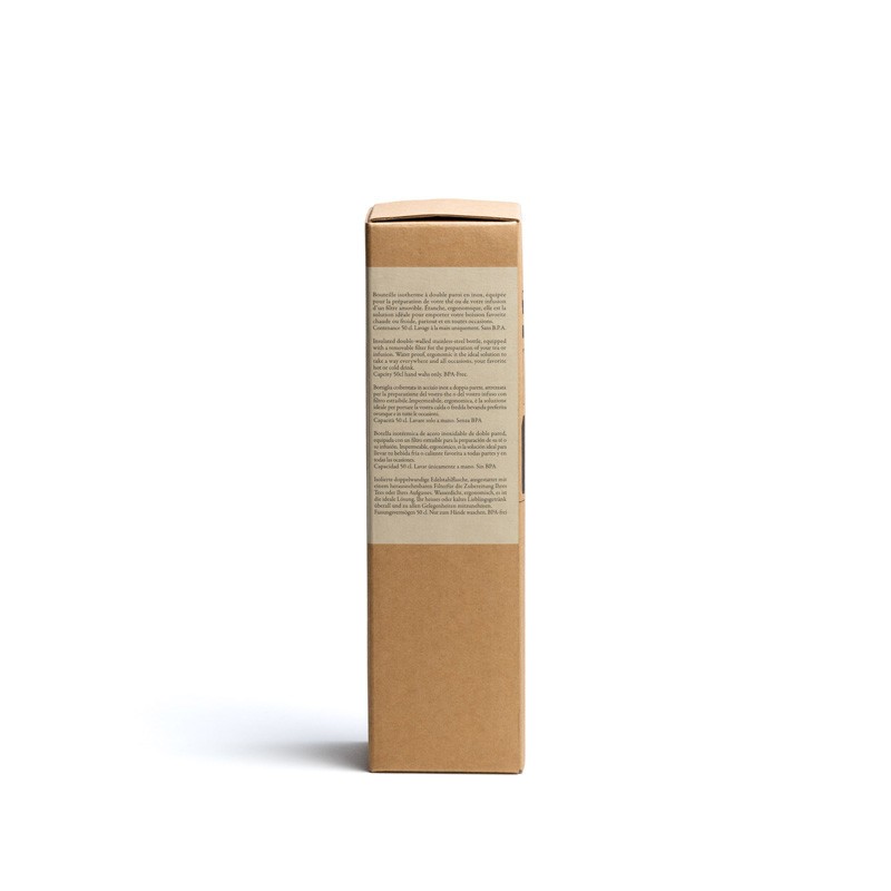 La bouteille isotherme City de Dammann Frères est conçue pour les amateurs de thé souhaitant emporter leur boisson préférée partout avec eux. Réalisée en acier inoxydable à double paroi, elle assure une excellente isolation thermique, permettant de conserver vos boissons chaudes pendant 8 heures et froides jusqu’à 24 heures. Sa capacité de 50 cl est idéale pour une utilisation quotidienne. De plus, elle est équipée d’un filtre amovible, facilitant la préparation de votre thé en feuilles.