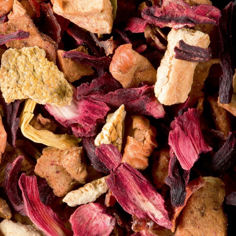 Fantasia est un carcadet aromatisé réunissant écorces de cynorrhodon et d’orange, fleurs d’hibiscus et morceaux de pomme, dans un mélange à la saveur d’orange sanguine pour une boisson fruitée et légèrement acidulée.