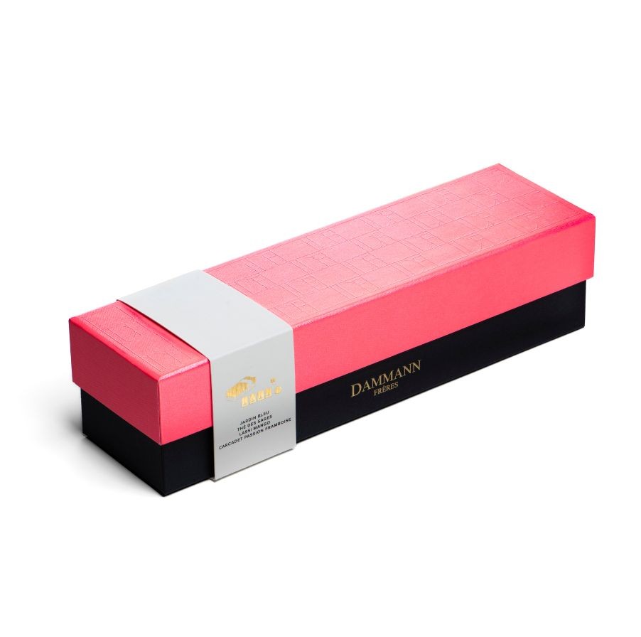 Parmi la diversité des jardins cultivés sous toutes les latitudes, jardin est un mot qui désigne également les plantations de thé. Les jardins lieux magiques qui inspirent DAMMANN Frères et invitent l’amateur à découvrir avec notre coffret « Jardin Botanique », une sélection de mélanges aux saveurs fruitées. JARDIN BLEU – 30 g. THÉ DES SAGES – 30 g. LASSI MANGO – 30 g. 3 thés noirs aromatisés ; PASSION-FRAMBOISE – 30 g. 1 préparation pour infusion aromatisée sur base de fleur d’hibiscus. Poids net : 120 g. L/H/P/ : 27.5/7/7.7 cm
