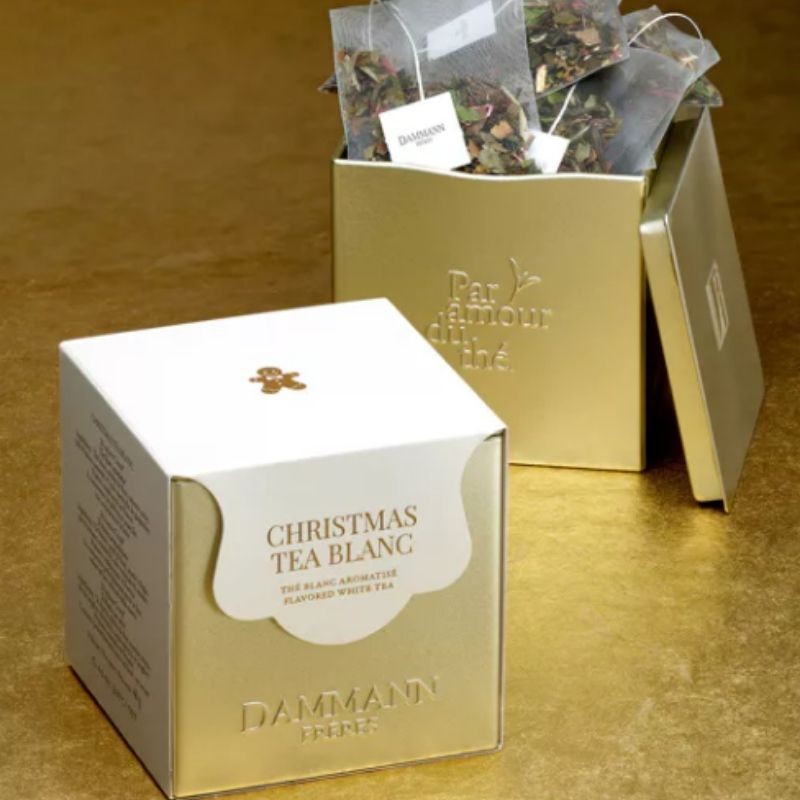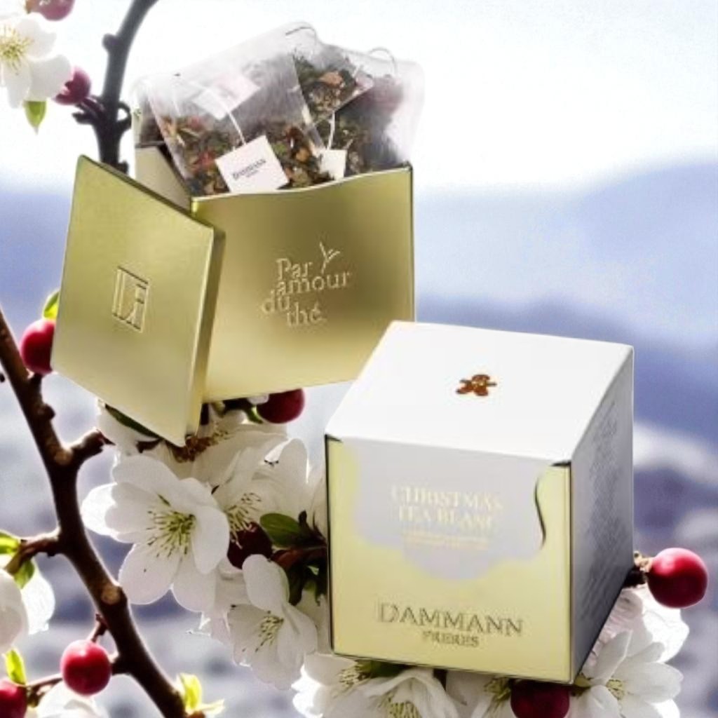 Le Christmas Tea Blanc de Dammann Frères incarne une version raffinée et poétique de la tradition de Noël. Dans sa boîte élégante de 20 sachets Cristal®, il associe la douceur d’un thé blanc d’exception à des notes parfumées et sophistiquées. Au premier abord, le mélange séduit par un arôme délicat de gingembre frais, suivi par la richesse chaleureuse du pain d’épices, la rondeur d’une amande douce et une touche subtile de cerise mûre, conférant à chaque infusion un sublime équilibre entre finesse et gourmandise.
