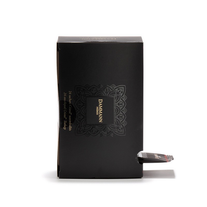 Pour préserver la qualité et l’intensité des arômes, il est recommandé de conserver la boîte dans un endroit sec, à l’abri de la lumière et des odeurs fortes. Les sachets Cristal® suremballés assurent une protection optimale, garantissant une fraîcheur prolongée.