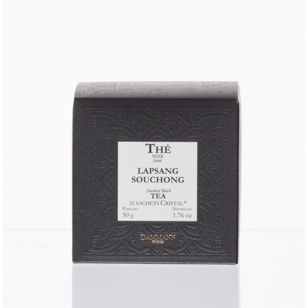 Le Smokey Lapsang de Dammann Frères est un thé noir de Chine, reconnu pour son parfum fumé distinctif. Les feuilles de thé sont délicatement séchées au-dessus de feux de bois, imprégnant ainsi le thé de cette saveur fumée caractéristique. À l’infusion, le parfum affirmé de fumée se révèle plus doux, subtil et presque délicat, restituant fidèlement la palette aromatique du Lapsang Souchong traditionnel.