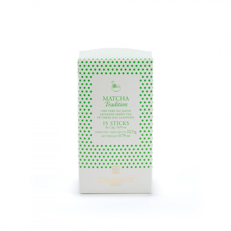 L’étui de 15 sticks Matcha Tradition de Dammann Frères vous permet de savourer un authentique thé vert japonais avec une préparation rapide et précise. Ce Matcha finement moulu provient de feuilles de thé cultivées à l’ombre, puis broyées en une poudre d’un vert éclatant, garantissant une richesse aromatique unique et une texture onctueuse.