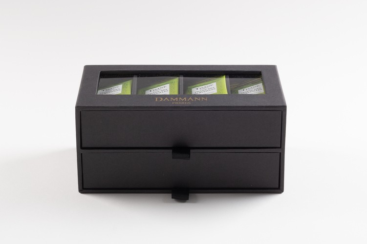 Coffret de 56 sachets Cristal® enveloppés (7 sachets de 8 variétés de thés et tisanes aromatisés): Tisane des Merveilles, Tisane Bali, Tisane Nuit à Versailles, Tisane du Berger, Breakfast, Darjeeling, Yunnan Vert, Earl Grey Yin Zhen.