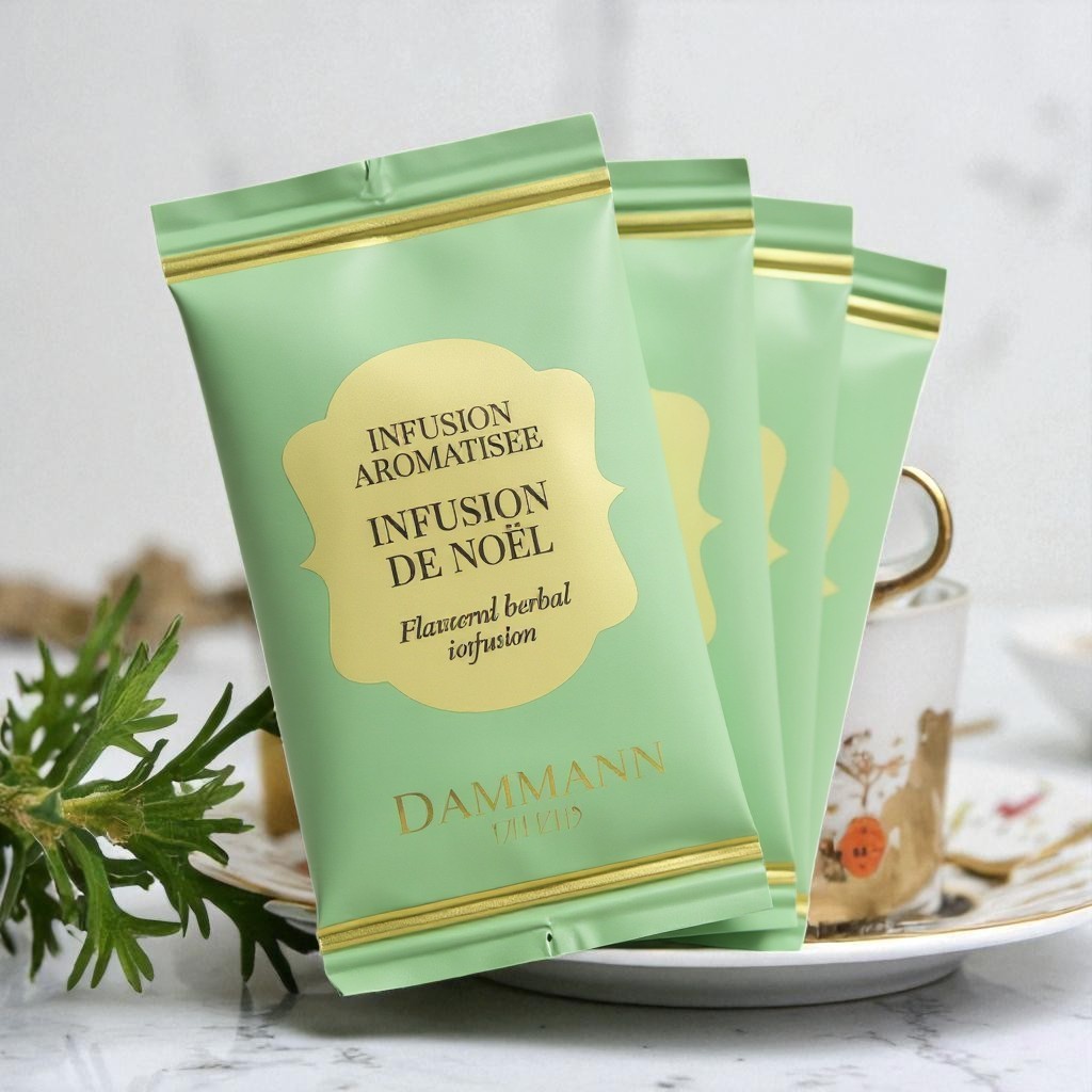 La Tisane de Noël de Dammann Frères incarne l’esprit chaleureux et gourmand des fêtes de fin d’année. Dans sa pochette raffinée aux reflets dorés et motifs hivernaux, elle renferme six sachets Cristal individuellement protégés, idéals pour s’offrir ou offrir un moment de détente parfumée.