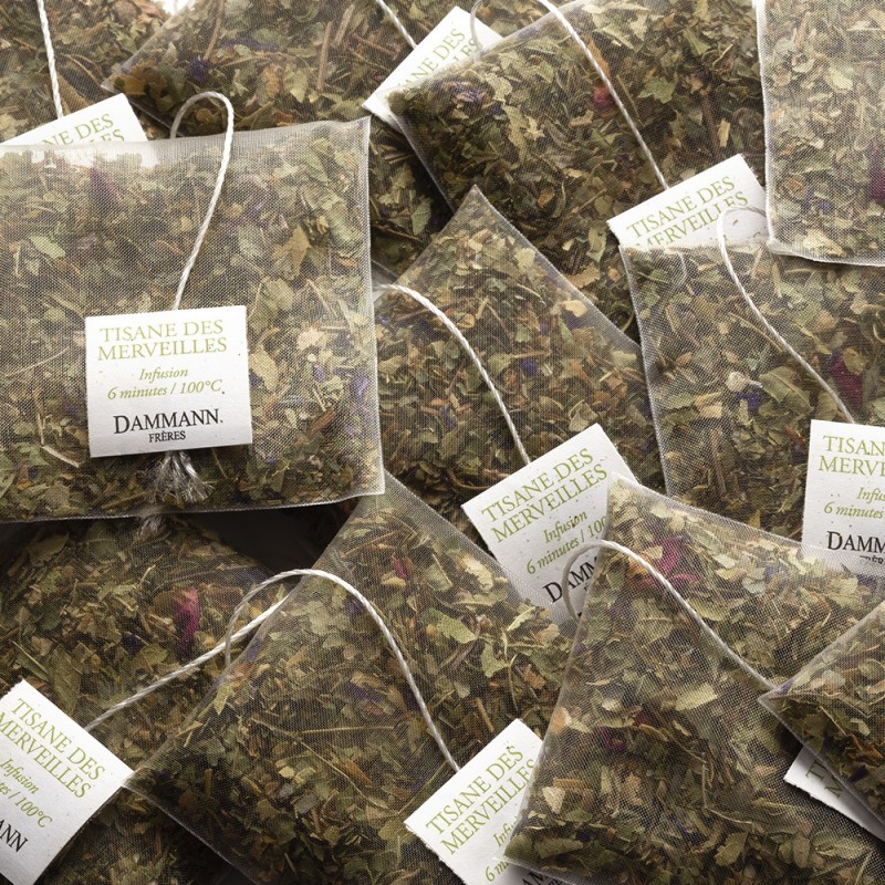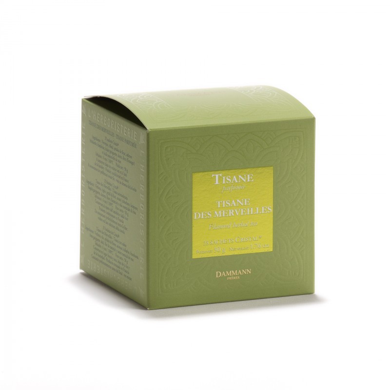 Véritable plaisir au regard, la tisane des Merveilles se révèle dans la tasse comme une boisson savoureuse, délicate et subtilement parfumée. En un mot, une vraie merveille ! Douce et merveilleusement fruitée, une tisane associant verveine et tilleul aux notes de rhubarbe, framboise, fraise, datte, fleur d’oranger et rose.