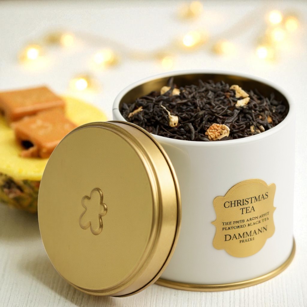 Plongez dans la douce ambiance des fêtes avec le Christmas Tea de Dammann Frères, un thé noir aromatisé aussi généreux que raffiné. Présenté dans une élégante boîte métallique de 100 g, il s’impose comme un incontournable des instants gourmands de l’hiver.