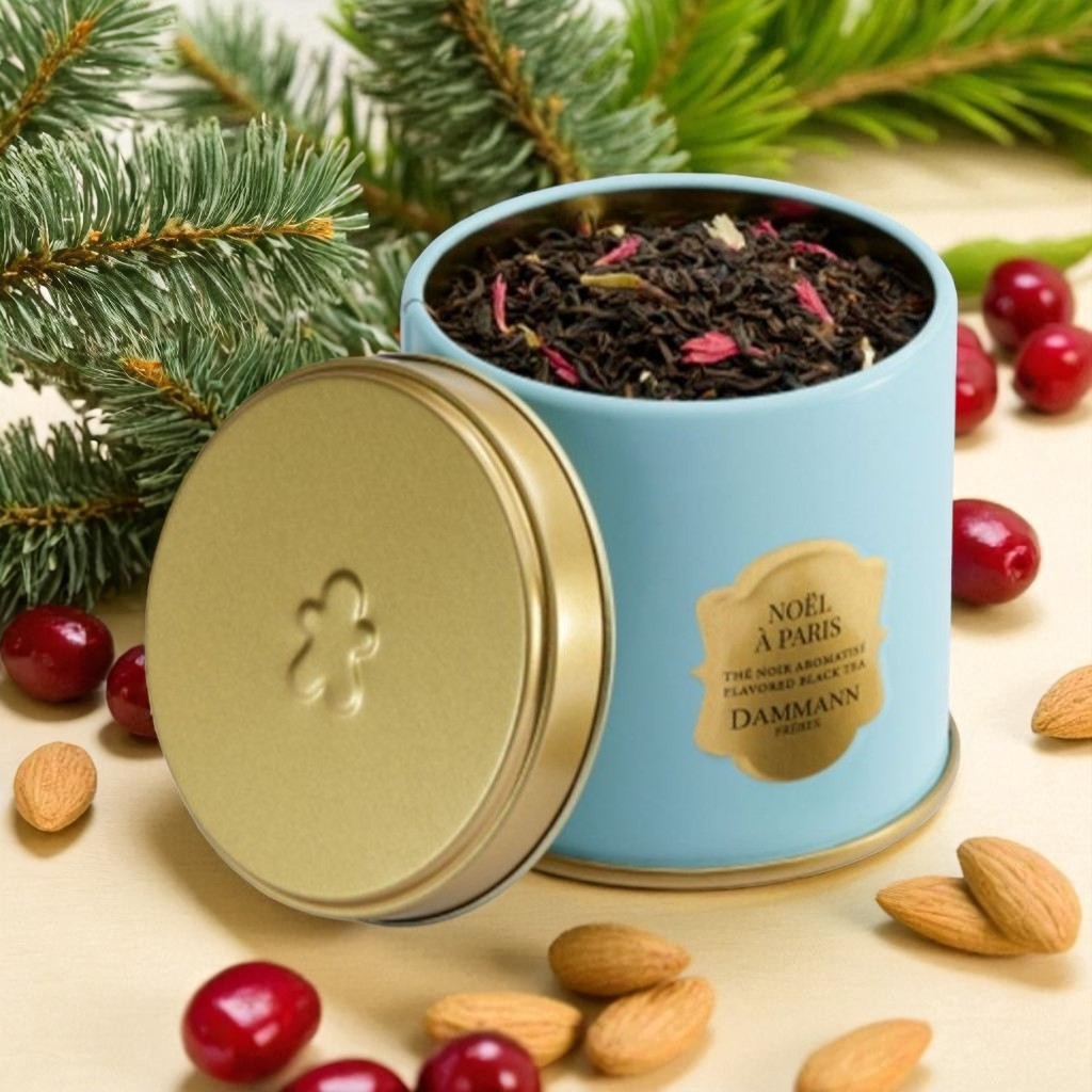 Dans une boîte métallique élégante de 100 g, la création « Noël à Paris » de Dammann Frères incarne toute la poésie et la gourmandise des fêtes de fin d’année. Elle s’inspire de la ville lumière, festive et romantique, pour proposer un mélange aromatisé à la fois raffiné et chaleureux.