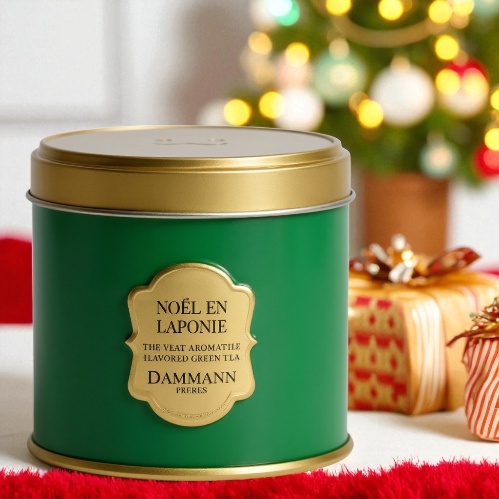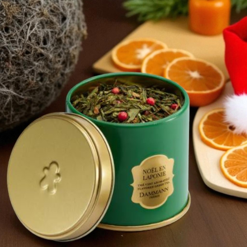 Le thé vert Noël en Laponie de Dammann Frères capture toute la douceur et la magie d’un Noël nordique. Présenté dans une élégante boîte métallique de 100 g, il évoque les paysages enneigés, les senteurs épicées et l’ambiance chaleureuse des fêtes passées au coin du feu.