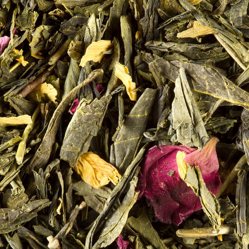 Le Thé des Deux Chinois de Dammann Frères est un thé vert Sencha de Chine subtilement aromatisé. Ce mélange harmonieux associe des saveurs de mangue, de citron vert et de noix de coco, rehaussées par des notes épicées de poivre et de gingembre. Parsemé de pétales d’hélianthe et de rose rouge, il offre une infusion aux arômes fruités et épicés, idéale pour une dégustation tout au long de la journée. Ce thé séduit par son équilibre entre douceur exotique et piquant subtil, transportant les sens vers des contrées lointaines.