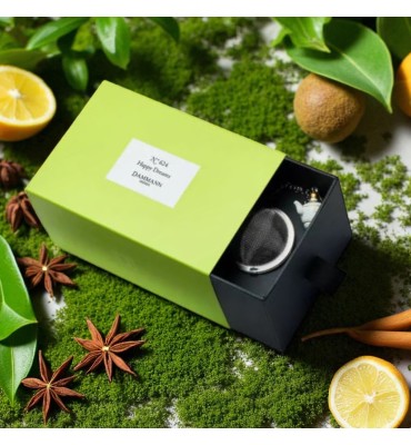 Le coffret n°624 Happy Dreams incarne l’équilibre subtil entre raffinement et bien-être. Conçu par Dammann Frères, il s’adresse à tous ceux qui recherchent une infusion sans théine, douce, mais riche en caractère. Présenté dans une boîte soigneusement décorée, il révèle une création aromatique pensée pour apaiser l’esprit et réveiller la gourmandise.