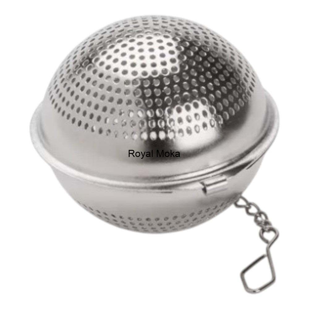 Boule à thé ronde en inox perforé avec chaînette, conçue pour l’infusion de thé en feuilles ou de tisanes directement dans une tasse ou une théière. Son diamètre de 5 cm permet une capacité suffisante pour infuser une portion généreuse de thé sans encombrement, tandis que les perforations assurent une circulation optimale de l’eau chaude autour des feuilles pour une extraction homogène des arômes. La chaînette permet de suspendre facilement l’infuseur à l’anse de la tasse ou à l’intérieur de la théière pour une préparation sans contact excessif avec l’eau bouillante. Fabriquée en acier inoxydable, cette boule à thé est résistante à la corrosion et adaptée à un usage quotidien. Elle convient à différents types de thés en vrac, des thés noirs aux thés verts en passant par les infusions et rooibos, tout en étant facile à nettoyer et réutilisable.