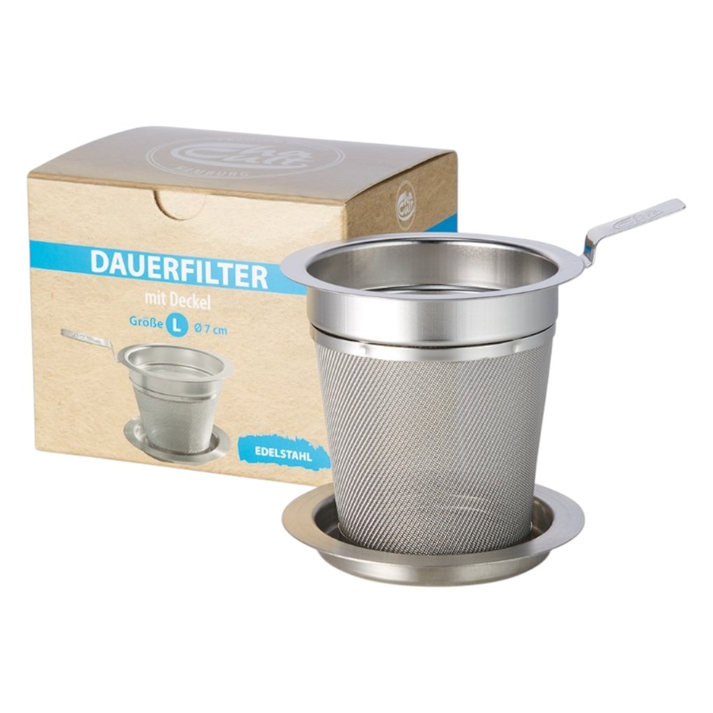 Filtre inox taille L pour infusion de thé en vrac, spécialement conçu pour les grandes tasses et théières. Ce filtre en acier inoxydable offre une maille très fine qui retient même les feuilles les plus fines comme le rooibos tout en assurant une circulation optimale de l’eau chaude pour une infusion riche en arômes. Grâce à son grand volume de remplissage, les feuilles ont suffisamment d’espace pour se déployer pleinement, libérant ainsi leur parfum naturel. Il s’utilise facilement dans une grande tasse, un mug ou une théière, et se suspend ou repose sans effort grâce à sa conception pratique. Le filtre est accompagné d’un plateau inox qui sert de couvercle pendant l’infusion ou de support après usage pour éviter les gouttes sur la table. La fabrication en acier inoxydable de qualité garantit durabilité, résistance à la corrosion et facilité d’entretien, ce qui en fait un accessoire essentiel pour les amateurs de thé exigeants.