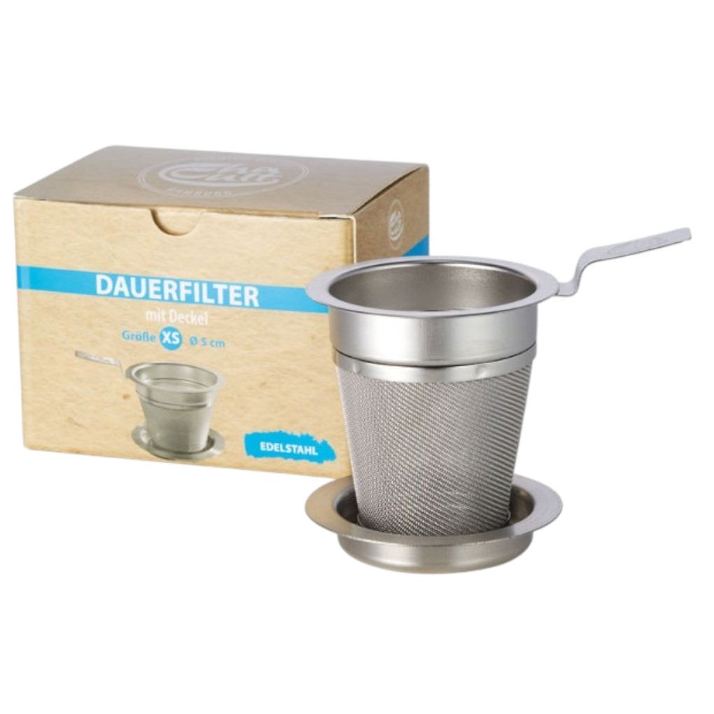 Filtre inox taille XS pour thé Cha Cult® conçu pour une infusion de thé simple et efficace. Ce filtre en acier inoxydable permet de préparer facilement des thés en vrac, mêmes très fins comme le rooibos, en retenant efficacement le thé grâce à son maille fine et durable. Il est idéal pour une utilisation avec des mugs ou des ensembles tea-for-one, offrant un espace généreux pour que les feuilles se déploient et libèrent pleinement leurs arômes. Le design pratique inclut un couvercle/plateau intégré qui facilite l’usage en servant de support après l’infusion pour éviter les gouttes sur la table. Fabriqué en inox robuste, ce filtre allie qualité premium et facilité d’entretien pour une longue durée de vie. Il convient tant aux amateurs de thé quotidiens qu’aux professionnels HoReCa cherchant un accessoire fiable et élégant pour la préparation du thé.