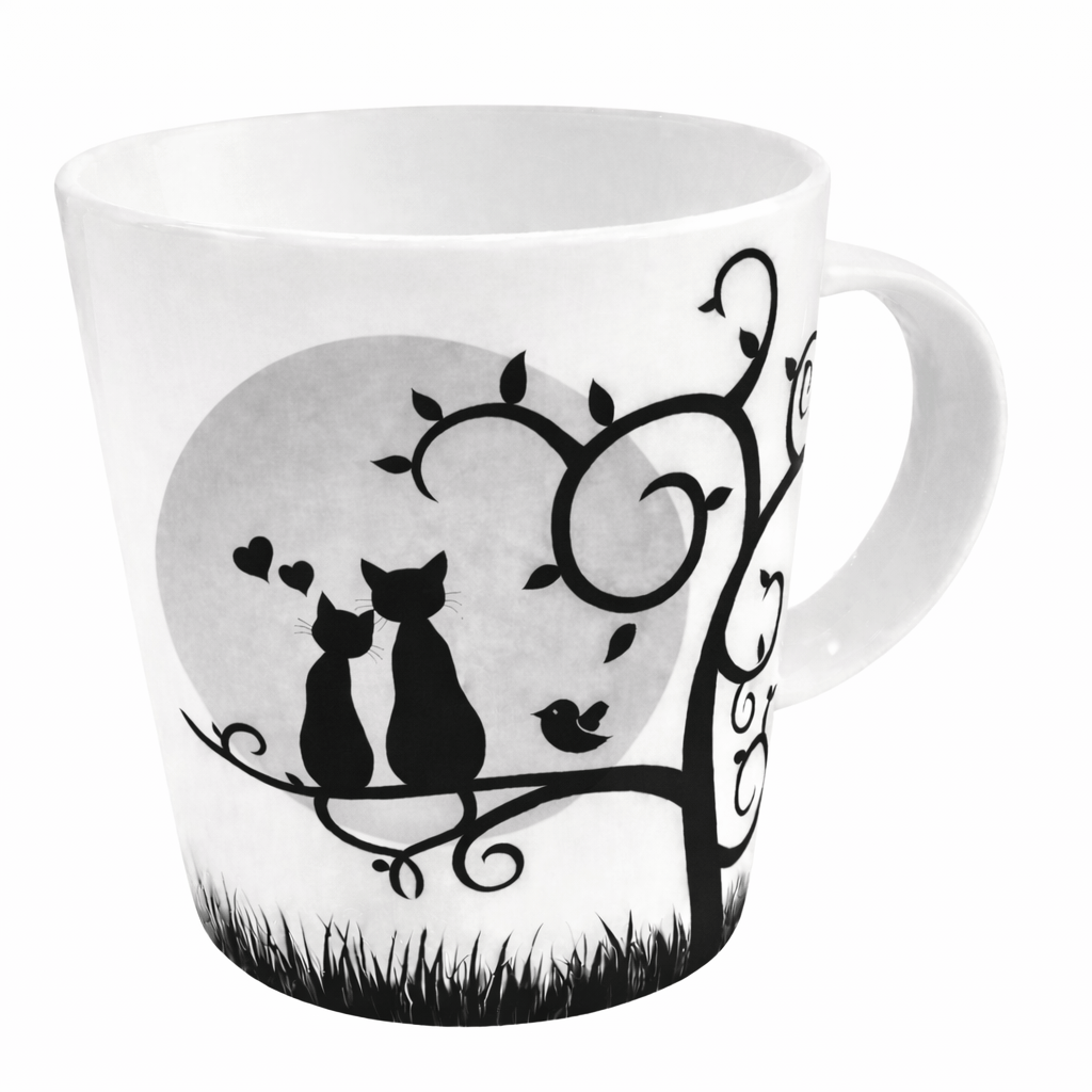 Le mug 40 cl Chats Clair de Lune est une tasse généreuse et poétique, idéale pour les amateurs de boissons chaudes qui apprécient également une touche artistique. Son illustration représentant deux chats amoureux assis sur une branche d’arbre sous le clair de lune évoque une ambiance romantique et onirique, parfaite pour accompagner vos pauses café ou thé du matin comme du soir.