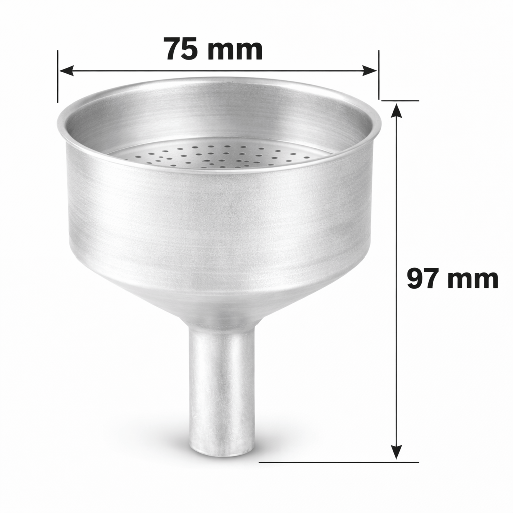 Ce filtre permet un dosage précis du café moulu et une extraction régulière, essentielle pour obtenir un moka équilibré et aromatique. Fabriqué en aluminium, il résiste parfaitement à la chaleur et à la pression générées lors de l’infusion. Ses dimensions exactes — diamètre 75 mm, hauteur 97 mm — garantissent un ajustement optimal dans la chaudière. Facile à installer et à nettoyer, ce filtre est idéal pour remplacer une pièce usée et prolonger la durée de vie de votre cafetière. Un accessoire indispensable pour préserver le goût authentique du café italien au quotidien.