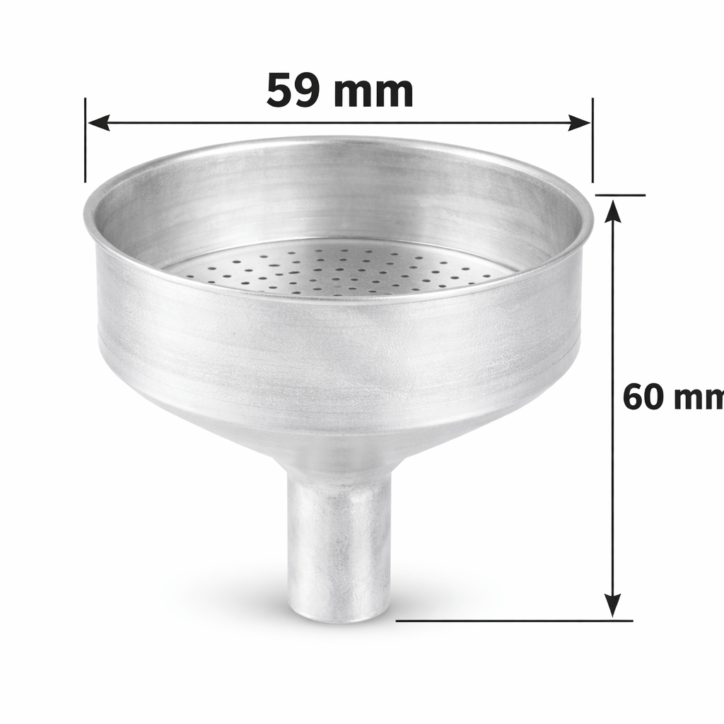 Filtre entonnoir Bialetti 3 tasses pour cafetière italienne Moka Express, Fiammetta, Break, Happy, Dama, Moka Melody Sport, Alpina, Moka Timer et Rainbow, en aluminium, diamètre 59 mm et hauteur 60 mm.
