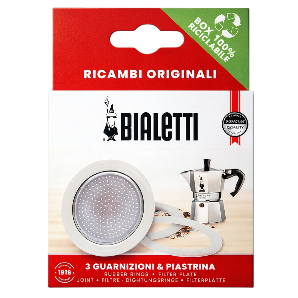 Joint de rechange Bialetti spécialement conçu pour les cafetières italiennes 1 tasse, garantissant une étanchéité optimale et une extraction régulière du café. Fidèle aux standards de la marque, il assure une pression maîtrisée et préserve les arômes tasse après tasse. Ce joint est vendu par lot de 3 avec filtre inox, idéal pour un entretien complet et durable de votre cafetière.