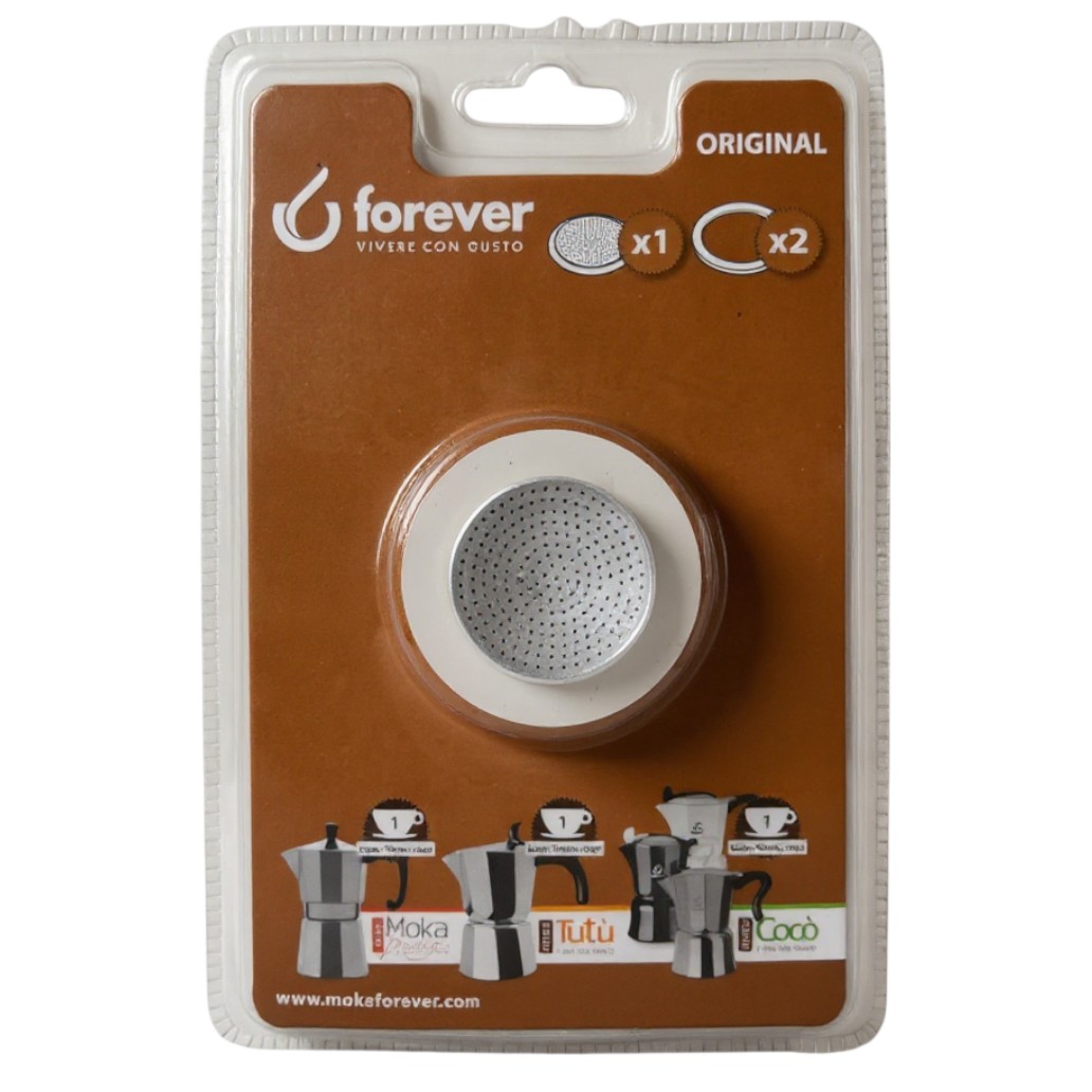 Joint de rechange Forever spécialement conçu pour les cafetières italiennes en aluminium 1 tasse, assurant une étanchéité parfaite et une extraction régulière. Fabriqué selon les standards de qualité de la marque, il garantit une pression constante pour préserver toute l’intensité aromatique du café. Ce joint est vendu par lot de 2 avec 1 filtre inox, solution pratique pour un entretien fiable et durable de votre cafetière.