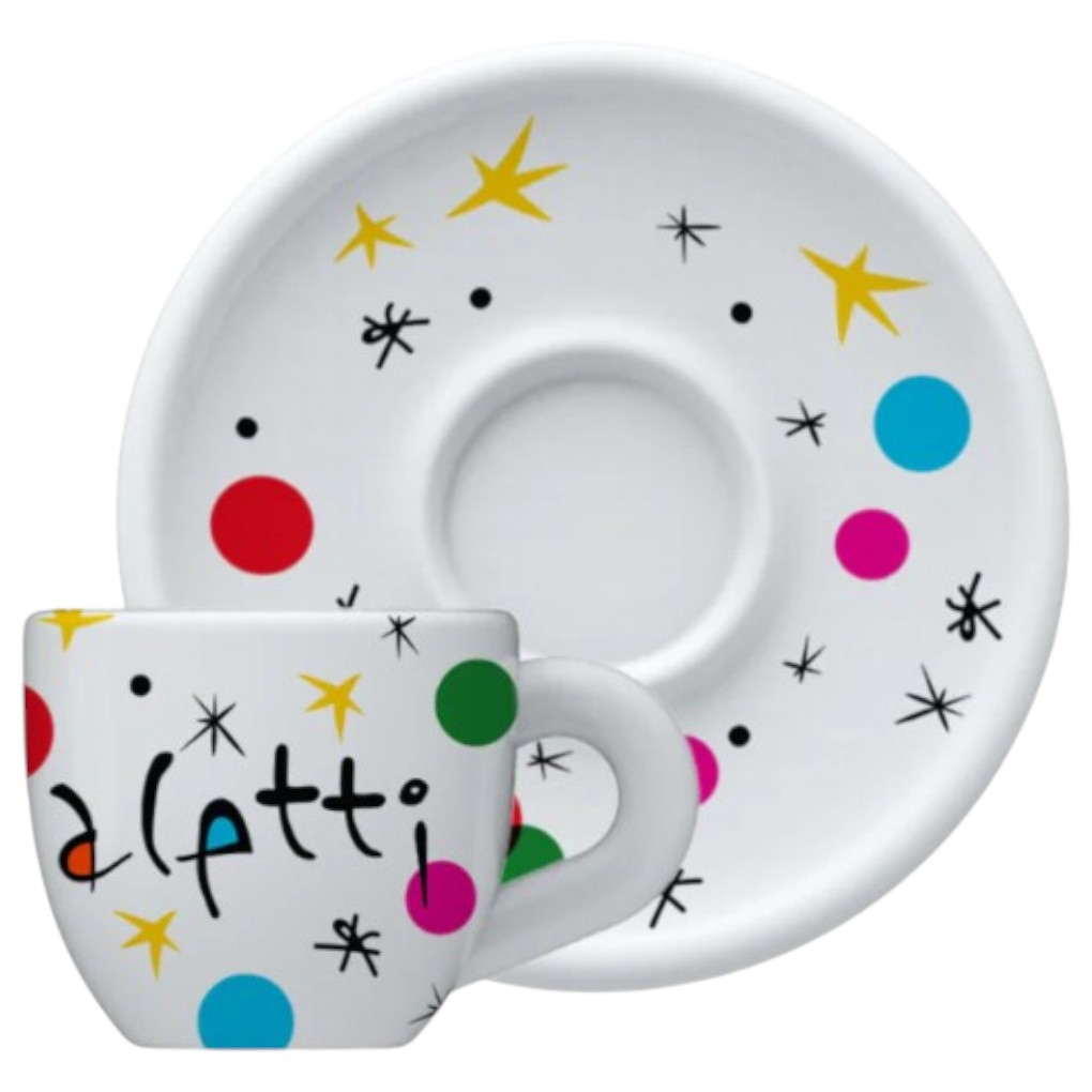 Tasse cappuccino Bialetti Miro 200 ml, en porcelaine, accompagnée de sa soucoupe assortie, issue de la collection Pop Art de la marque italienne Bialetti. Inspirée par l’univers graphique et coloré de Joan Miró, figure majeure de l’art surréaliste du XXᵉ siècle, cette tasse apporte une touche artistique et contemporaine à la dégustation du cappuccino. Sa contenance de 200 ml est parfaitement adaptée aux recettes traditionnelles de cappuccino, avec un bon équilibre entre café et mousse de lait. La porcelaine assure une bonne rétention de la chaleur tout en mettant en valeur les couleurs vives et les formes emblématiques du décor. Présentée dans un coffret cadeau, cette tasse est idéale pour offrir ou pour compléter une collection Bialetti originale. Un accessoire à la fois fonctionnel et décoratif, pensé pour les amateurs de café et de design.