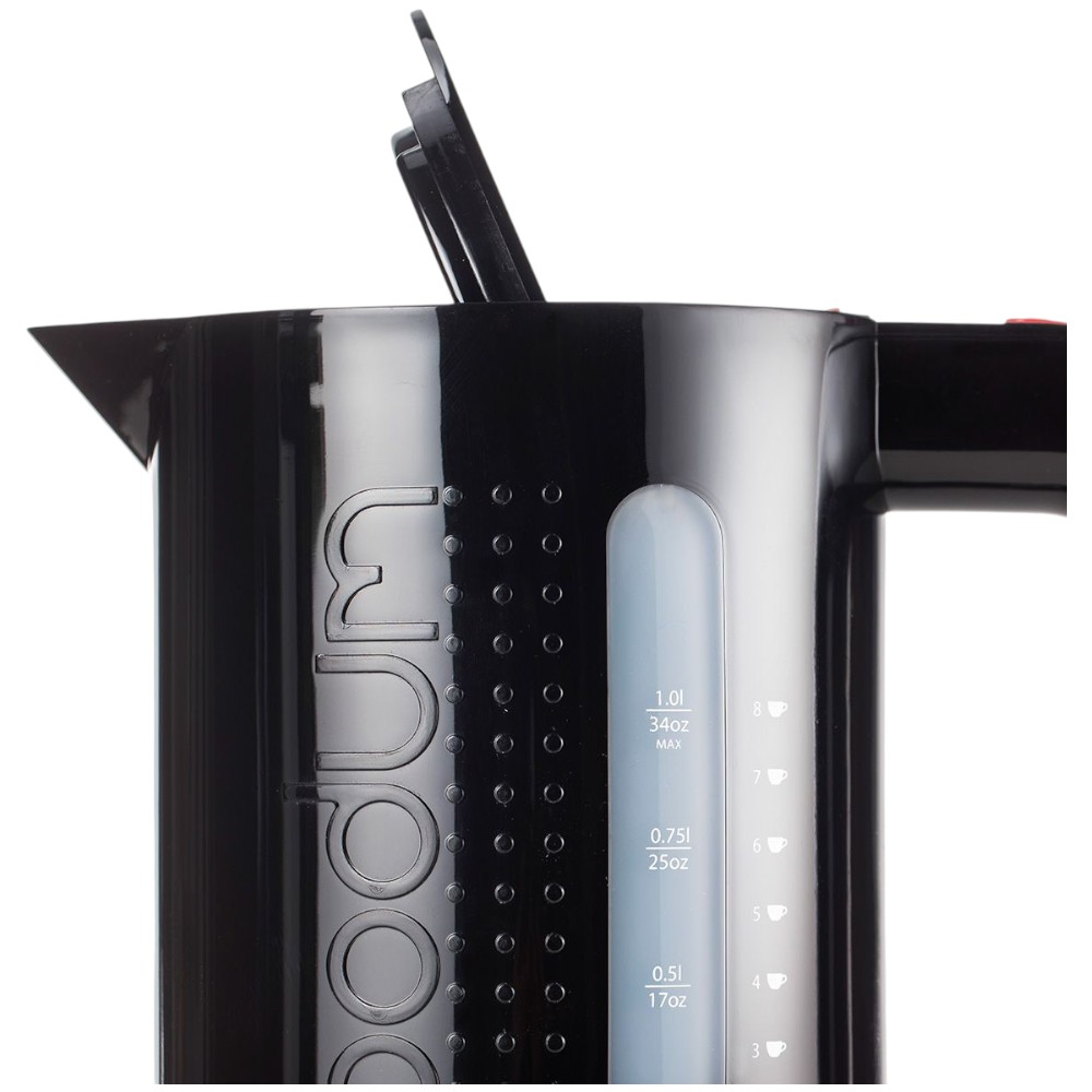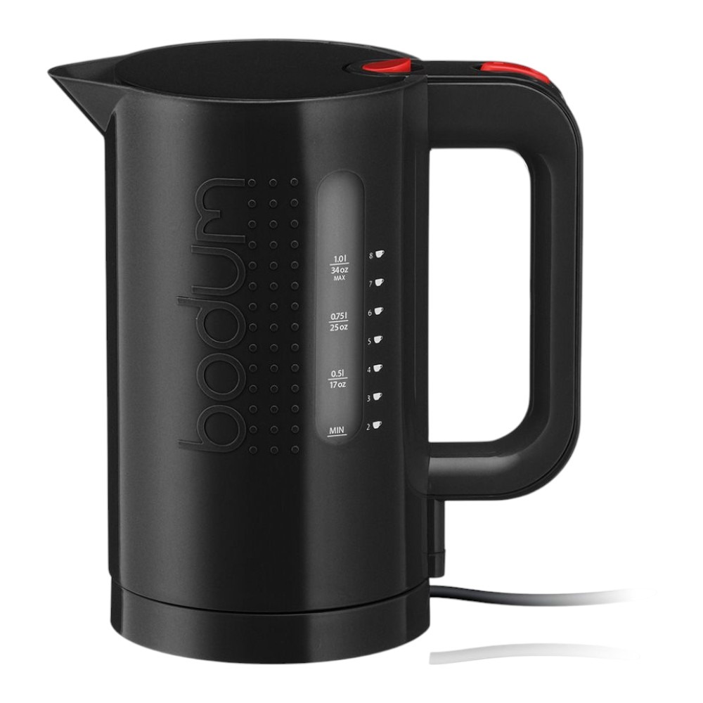La bouilloire électrique Bodum Bistro 1 L est un appareil de petit électroménager conçu pour faire bouillir rapidement l’eau nécessaire à la préparation de thés, cafés, infusions ou soupes instantanées. Dotée d’un design sobre et moderne, elle s’intègre facilement à tout espace cuisine ou petit-déjeuner. Sa capacité de 1 litre permet de préparer une quantité d’eau chaude adaptée à la plupart des usages quotidiens. La puissance de 1300 W assure une chauffe rapide et efficace, tandis que le niveau d’eau visible garantit un remplissage précis. La bouilloire est pourvue d’un socle pivotant à 360° sans fil pour une mise en place facile, d’un arrêt automatique à ébullition pour plus de sécurité et d’un bec verseur avec filtre anti-calcaire qui améliore la qualité de l’eau. Simple à utiliser et fiable au quotidien, la Bodum Bistro est une solution pratique pour tous ceux qui souhaitent une eau chaude rapidement et en toute simplicité.