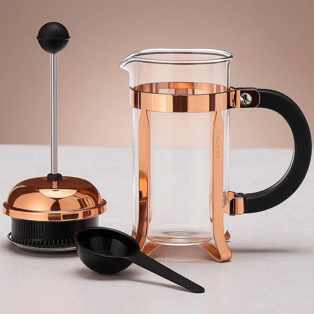 L’utilisation reste simple : il suffit d’ajouter du café moulu grossièrement, de verser de l’eau chaude, de laisser infuser quelques minutes puis d’abaisser lentement le piston. Cette méthode permet de préserver toutes les nuances aromatiques du café. Pour prolonger la durée de vie de la cafetière, un nettoyage manuel avec une éponge douce est recommandé afin de préserver la brillance du cuivre. Avec sa capacité d’un litre, elle convient parfaitement pour préparer plusieurs tasses lors d’un petit-déjeuner ou d’un moment partagé. Solide, esthétique et agréable à utiliser, la Bodum Chambord Cuivre 1 L est un choix idéal pour un café maison de qualité.