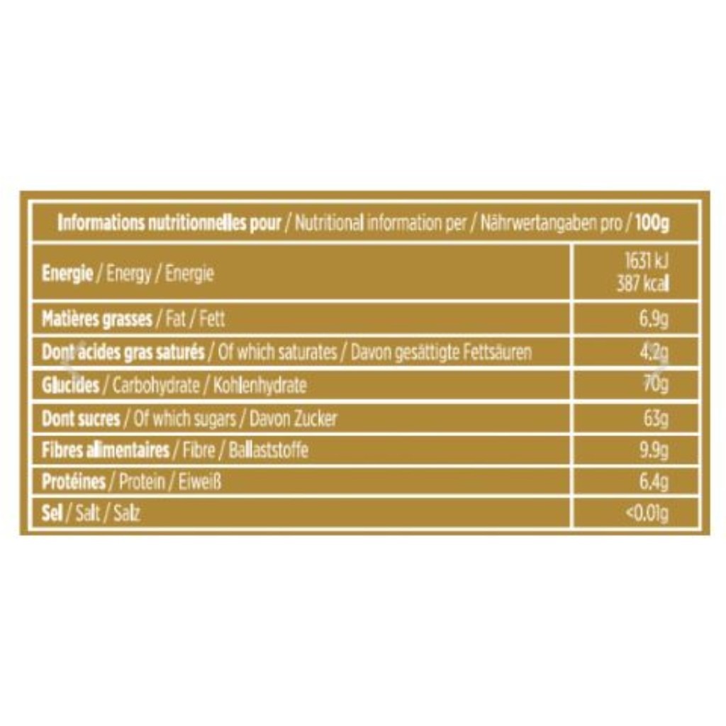 Peut contenir des traces de céréales contenant du gluten, œufs, soja, lait, fruits à coque, céleri et sulfites.