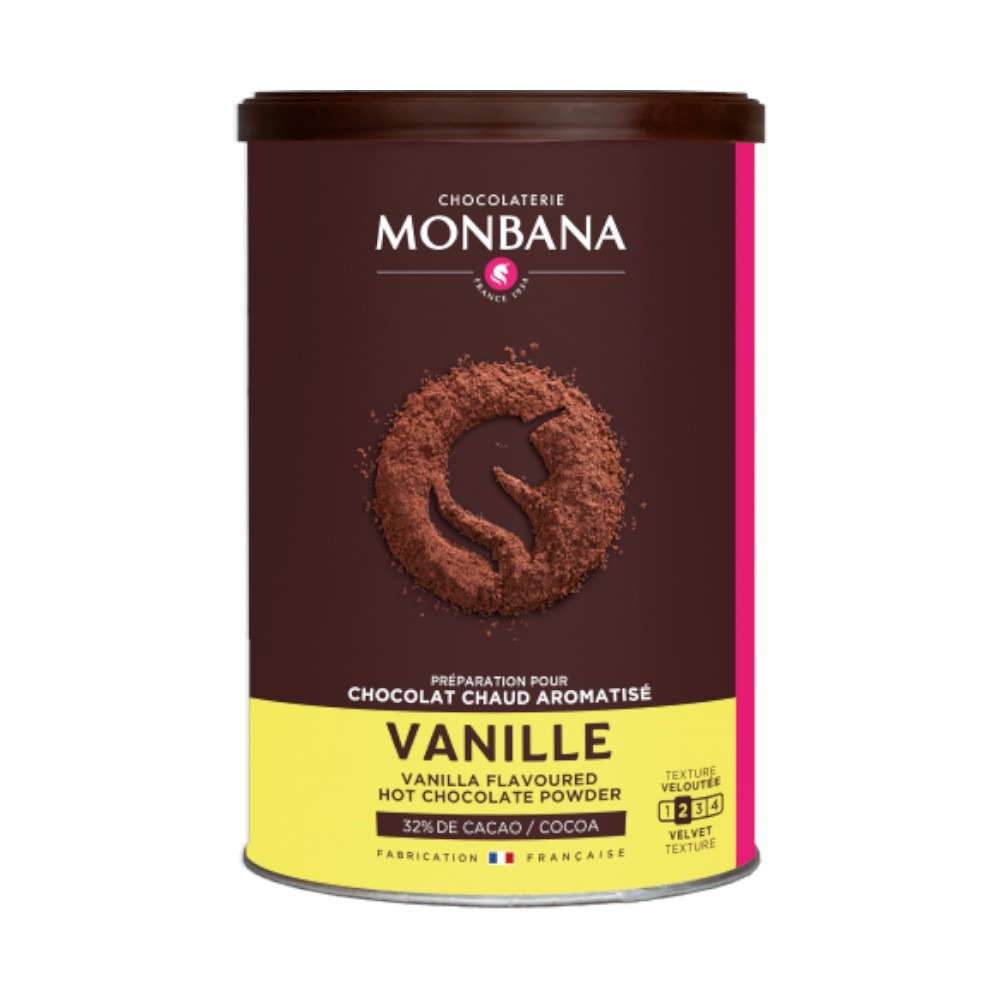 Chocolat en poudre arôme vanille de la maison Monbana, conçu pour une boisson chaude onctueuse et délicatement parfumée. Cette préparation associe la richesse du cacao à la douceur douce et aromatique de la vanille, créant une boisson harmonieuse et réconfortante. Facile à dissoudre dans du lait chaud ou de l’eau, ce chocolat en poudre permet d’obtenir rapidement une boisson veloutée et parfumée, idéale pour les pauses gourmandes, les matinées cocooning ou les moments partagés en famille ou entre amis. L’arôme naturel de vanille apporte une note délicate et subtile qui sublime le cacao sans masquer sa profondeur. Ce chocolat en poudre se prête aussi bien aux amateurs de boissons chocolatées classiques qu’à ceux qui recherchent une touche aromatique raffinée.