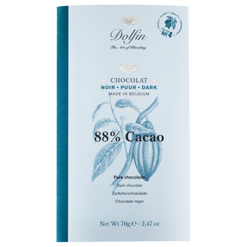 La tablette de chocolat noir 88 % de cacao est une création intense de Dolfin, emblématique du savoir-faire du chocolat belge. Avec sa forte teneur en cacao, elle s’adresse aux amateurs de chocolats noirs très puissants, à la recherche d’une expression authentique et sans compromis.