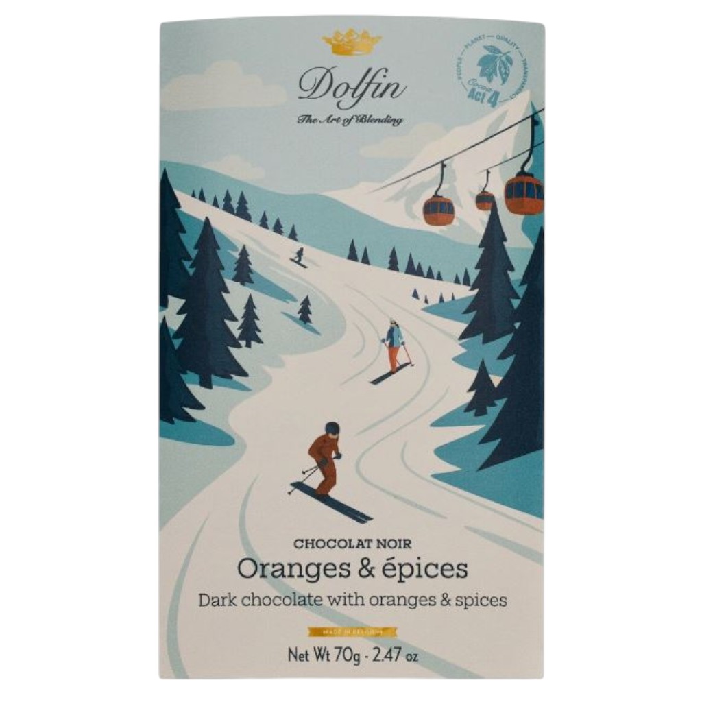 La tablette de chocolat noir Oranges & Épices – Vintage Winter Collection associe l’intensité du chocolat noir à la fraîcheur vive de l’orange confite et à la chaleur délicate des épices. Inspirée des ambiances hivernales, cette création offre un équilibre gourmand entre profondeur cacaotée, notes d’agrumes et touches épicées.